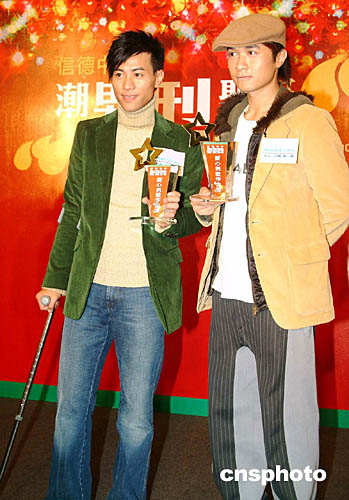 踏入年終,香港樂壇頒獎(jiǎng)禮一觸即發(fā),眾歌星紛紛外出宣傳拉票。12月23日,信德中心邀請(qǐng)被喻為樂壇『新四天天王』的其中兩位大熱型男古巨基、梁漢文出席慈善活動(dòng)。大會(huì)特別頒發(fā)『2004年度樂壇愛心型男金獎(jiǎng)』的獎(jiǎng)座感謝古巨基[右]、梁漢文的鼎力支持。作者:洪少葵