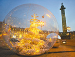 當(dāng)?shù)氐氖フQ裝置中,最矚目首推Vendome廣場(chǎng)上一個(gè)個(gè)巨型圣誕泡泡玻璃球,不但每個(gè)泡內(nèi)也藏有一株圣誕樹(shù),透過(guò)光折射,似將整個(gè)廣場(chǎng)藏于泡內(nèi),很有童話色彩﹗原來(lái)這些玻璃球是紀(jì)念瑞士在巴黎推廣旅游一百周年而特地設(shè)置的。