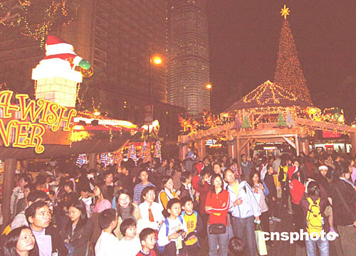 一列由圣誕老人駕駛的火車裝滿圣誕禮品﹐緩緩駛出位于香港中環(huán)皇后像廣場的“圣誕平安小鎮(zhèn)”﹐贏得眾多市民的觀望﹐從中領(lǐng)略到節(jié)日更加溫馨的滋味。