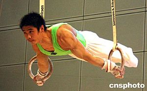 二○○四“蘇州高爾夫花園杯”全國(guó)體操錦標(biāo)賽暨奧運(yùn)會(huì)預(yù)選賽五月十四日在江蘇蘇州市體育中心拉開(kāi)帷幕,來(lái)自中國(guó)各省、自治區(qū)、直轄市的二十二個(gè)代表隊(duì)的二百七十多名運(yùn)動(dòng)員將角逐雅典奧運(yùn)會(huì)參賽資格。作者:蔣振江
