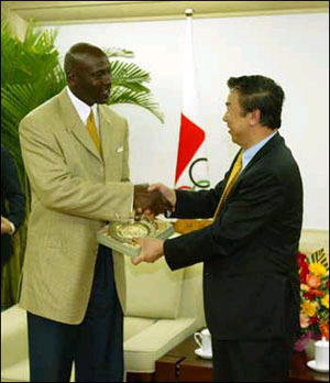 袁偉民稱,喬丹追求卓越的精神是值得所有青年人學習的,具有榜樣的力量,可以教育一代人。他的這次來訪,將參加一系列活動,這些活動將會讓中國的青少年學到很多東西,同時,喬丹也可以通過這些活動從一個側面了解中國籃球的發(fā)展。袁偉民強調說,中國改革開放以來,各方面都取得了長足的進步,籃球運動也是如此。我們已經有球員,如姚明和巴特爾等在NBA打球。隨著北京籌備2008年奧運會的工作在逐步深入,奧運會場館建設和市場開發(fā)都已經展開。相信北京奧運會將會讓中國和北京在各方面取得更大的發(fā)展。