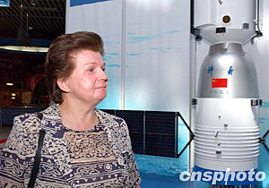 現(xiàn)年六十七歲的捷列什科娃雖年過花甲,但舉手投足間的迷人風(fēng)采依然不減當(dāng)年。她一邊興致勃勃地觀看“長征”運(yùn)載火箭、“神舟”飛船等各種航天器模型,一邊親切地同身邊的小觀眾和記者們交談。她說,“中國航天可以說是取得了非常燦爛的成就”、“宇宙的條件對(duì)于男、女來說沒有區(qū)別,是完全一樣的”、“中國女性目前在各行各業(yè)表現(xiàn)都很突出,將來她們?cè)谟詈绞聵I(yè)中會(huì)做得非常優(yōu)秀、非常棒”。