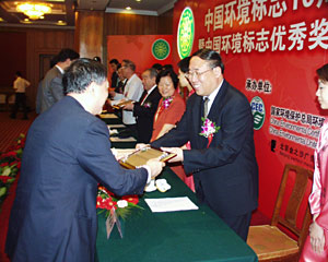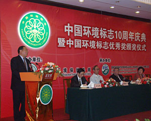 在慶典儀式上,國家環(huán)境總局向獲得中國環(huán)境標(biāo)志優(yōu)秀獎(jiǎng)和促進(jìn)獎(jiǎng)的中外企業(yè)頒獎(jiǎng)。聯(lián)合國環(huán)境署、德國藍(lán)色天使、歐洲歐盟之花、北歐白天鵝、日本生態(tài)標(biāo)簽、韓國環(huán)境標(biāo)志、瑞典III型標(biāo)志、全球環(huán)境標(biāo)志網(wǎng)絡(luò)等國際組織的專家以及全國政協(xié)、全國人大、國家發(fā)改委、商務(wù)部等政府、科研和企業(yè)機(jī)構(gòu)代表三百余出席了慶典。