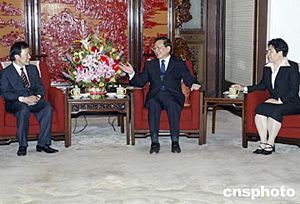 唐家璇會(huì)見時(shí)首先對(duì)客人的到訪表示歡迎,并對(duì)美東華人社團(tuán)聯(lián)合總會(huì)在維護(hù)僑益、促進(jìn)中國和平統(tǒng)一方面作出的貢獻(xiàn)表示肯定。他說,美東華人社團(tuán)聯(lián)合總會(huì)致力于廣泛團(tuán)結(jié)紐約及美東地區(qū)的華僑華人及社團(tuán),努力爭取和維護(hù)僑胞正當(dāng)合法權(quán)益,積極融入當(dāng)?shù)刂髁魃鐣?huì),不斷推進(jìn)社會(huì)公益事業(yè),在促進(jìn)中美友好往來,支持中國改革開放和經(jīng)濟(jì)建設(shè),推動(dòng)中國和平統(tǒng)一等方面作出了大量富有成效的工作,值得充分贊賞。