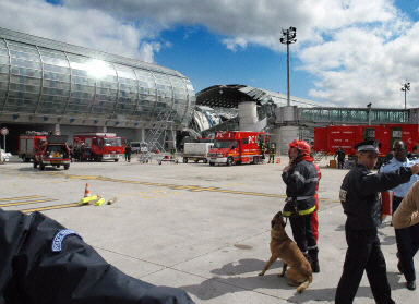 法國官方已在現(xiàn)場啟動了“紅色方案”,即就地展開全方位醫(yī)療救助,并全面實(shí)行救援工作,動用一切必要條件,確保搶救工作順利進(jìn)行。圖為法國警方搜索犬待命拯救坍塌失蹤人員。