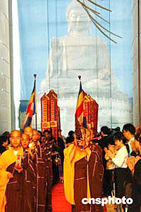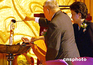 全國政協(xié)副主席、中共中央統(tǒng)戰(zhàn)部部長(zhǎng)劉延?xùn)|、香港特首董建華等,五月二十六日出席香港佛教暨各界迎請(qǐng)佛指舍利瞻禮祈福大會(huì)浴佛典禮。 作者:錢興強(qiáng)