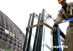 中新網(wǎng)5月27日電 據(jù)《新京報》報道,昨日下午3時左右,國家大劇院“巨蛋”橢球屋面的第一塊玻璃幕墻成功安裝。此次安裝的玻璃幕墻是國家大劇院最先安裝的外墻玻璃,預(yù)計這1126塊超白平板玻璃將在6月底之前全部安裝完畢。到時候,人們就可以透過這些超透明玻璃清晰地看到國家大劇院內(nèi)的一切景觀。