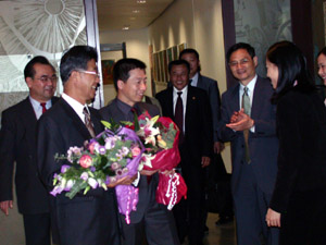 中國常駐維也納代表張炎大使和中國駐奧地利大使盧永華等前往機(jī)場(chǎng)迎接楊利偉等中國航天英雄。