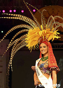 第十六屆世界模特小姐大賽國(guó)際總決賽五月二十八日晚在美麗的西子湖畔隆重舉行。圖為世模進(jìn)行特色服飾表演。作者:張茵