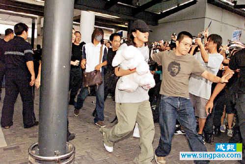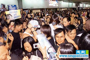 F3在大約6時(shí)抵達(dá),而朱孝天有工作在身稍后才到港,F(xiàn)場(chǎng)所見仔仔帶上口罩,帶病出席盛會(huì)。五百多Fans一見偶像立即蜂擁而上,保安由六人增至60人,F(xiàn)ans爭(zhēng)相上前握手和送花,場(chǎng)面一片混亂,更弄破一名攝影記者的鏡頭。期間吳建豪在人海中被人拍中頭部,使他十分愕然,在旁的暴龍加以安慰。F3離開機(jī)場(chǎng)后,F(xiàn)ans立即變成追蹤隊(duì),在公路上追車時(shí)險(xiǎn)象環(huán)生。此外,蔡依林昨晚在百忙中抽空到Dior掃貸,盡顯購(gòu)物狂本色。