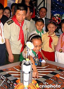 楊利偉與小朋友們一起饒有興趣地觀看和操作了機(jī)器人火星探險(xiǎn)車(chē)等展覽項(xiàng)目。他所到之處,都被熱情的孩子們團(tuán)團(tuán)圍住,索要簽名、合影留念。楊利偉盡可能地滿足了每個(gè)人的要求,并不時(shí)提醒大家“不要擁擠、別碰到孩子”。