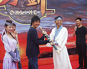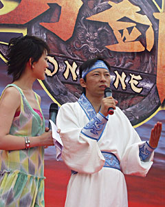 在象征著中國龍的居庸關(guān)長城腳下,上千位手持搜狐“群英帖”的嘉賓匯集一堂,儼然一場名副其實的江湖群英會。《刀劍Online》發(fā)布會以氣勢恢弘的舞龍開場,代表著《刀劍Online》將在群雄逐鹿的網(wǎng)游市場,以原汁原味的中國功夫開篇中國人自己的網(wǎng)游傳奇!八押崎T人”張朝陽一身古代俠士裝扮出場,一番刀劍揮舞,顯示了不凡的武功造詣。而作為此款網(wǎng)游主題音樂代言人的內(nèi)地著名歌手孫楠則以一曲曲風(fēng)高揚,極具武俠風(fēng)格的《刀劍》將發(fā)布會氣氛推向高潮。