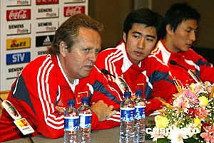 二零零六年世界杯足球賽亞洲區(qū)預(yù)賽中國隊(duì)對(duì)馬來西亞隊(duì)的比賽將于六月九日晚在天津舉行,中國足球隊(duì)主教練阿里漢六月八日在新聞發(fā)布會(huì)上表示,中國與馬來西亞隊(duì)的比賽將是一場(chǎng)艱苦的比賽,隊(duì)員們已經(jīng)做好了準(zhǔn)備。中新社記者:毛建軍