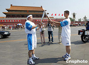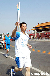 在火炬點(diǎn)燃后,在148名火炬手中第一個(gè)出場的國家體育總局副局長、中國奧委會(huì)副主席、北京奧組委副主席于再清接過火炬,開始了這次傳遞活動(dòng)。據(jù)悉,NBA休斯頓火箭隊(duì)中鋒姚明擔(dān)當(dāng)最后一棒。