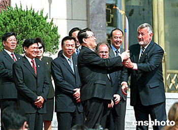 中新網(wǎng)6月9日電 今天上午9時(shí),2004年雅典奧運(yùn)會(huì)火炬北京傳遞活動(dòng)在北京正式開始;顒(dòng)起點(diǎn)設(shè)在人民大會(huì)堂東門外廣場,傳遞途中設(shè)立148個(gè)接力點(diǎn),終點(diǎn)設(shè)在頤和園。