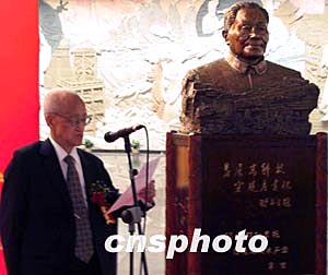 中新網(wǎng)北京6月9日電(記者 孫自法)中共第二代領(lǐng)導(dǎo)人、中國改革開放總設(shè)計師鄧小平誕辰百年的首尊紀(jì)念銅像,九日在北京中華世紀(jì)壇揭幕。銅像將長久呈放于中華世紀(jì)壇的世紀(jì)大廳,供參觀者瞻仰紀(jì)念。