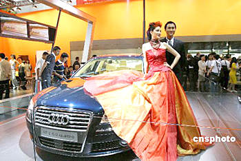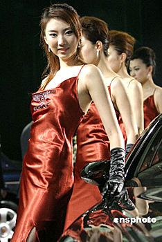 6月9日是2004年北京國際汽車展覽會開幕前一天的新聞日,一批名模出現(xiàn)在名車展臺,在各大汽車廠商推出的精彩節(jié)目中亮相。魯谷 攝