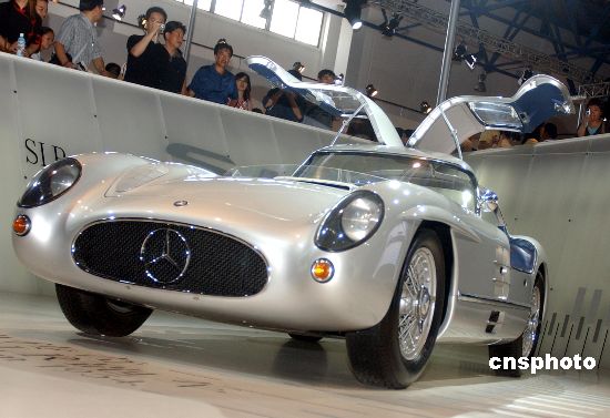 六月十日,二零零四北京國際車展在北京中國國際展覽中心正式開幕,奔馳SLR邁凱倫跑車閃亮登場,令現(xiàn)場觀眾大飽眼福。中新社記者:武仲林