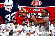 六月十一日,來(lái)自美國(guó)國(guó)家橄欖球大聯(lián)盟的明星球員Teyo Johnson在北京對(duì)此間參加首屆美式腰旗橄欖球總決賽的中國(guó)小運(yùn)動(dòng)員進(jìn)行技術(shù)指導(dǎo)。美式腰旗橄欖球是源于美國(guó)國(guó)家橄欖球大聯(lián)盟(NFL)的一項(xiàng)大眾化運(yùn)動(dòng),旨在將美式橄欖球的基礎(chǔ)規(guī)則和技巧介紹給全世界八至十四歲的青少年。目前,這項(xiàng)運(yùn)動(dòng)在世界三十多個(gè)國(guó)家的青少年中廣為流行。中新社記者:武仲林