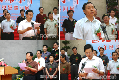 中國新聞社副總編輯田惠明、中共宜昌市委副書記文成國、市委常委、宣傳部長趙舉海、市人大副主任肖道根、市政府副市長廖達鳳、市政協(xié)主席李泉、解放軍宜昌市軍分區(qū)司令員張建國、三峽大學、武警二支隊負責人的代表、中國新聞社湖北分社社長章敦華等出席首展儀式并且為首展剪彩。首展儀式由趙舉海主持,文成國、田惠明和各界代表先后在儀式上發(fā)表講話。