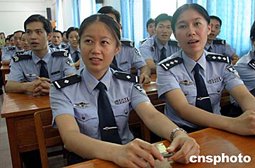 為了迎接“中國——東盟博覽會”的到來,提高警員的外語水平,掌握基本國際禮儀,六月二十一日南寧市交警迎接“中國——東盟博覽會”外語培訓班在廣西國際青年交流學院舉辦開班典禮,培訓主要以學習英語及越語等東盟各國小語種為主,交警們正在認真學習越語“你好”。中新社記者:張勤
