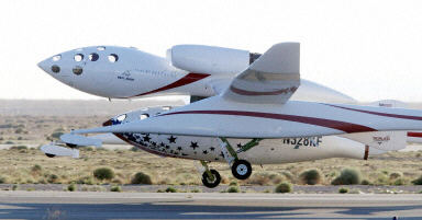 美國東部時間21日9時45分(北京時間21日21時45分)左右,搭載著“太空飛船一號”的一架噴氣式飛機“白色騎士”從跑道上起飛。約1小時后,“白色騎士”飛抵15公里高空,“太空飛船一號”與之脫離。飛船的火箭發(fā)動機點火加速,使之飛出大氣層,抵達約100公里高度的亞軌道,然后落回地球。