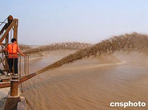 中新網(wǎng)6月22日電 黃河第三次調(diào)水調(diào)沙試驗(yàn)人造洪峰預(yù)計(jì)于今天中午到達(dá)黃河下游山東擾沙點(diǎn),屆時(shí),山東段的人工擾沙試驗(yàn)將隨即展開。