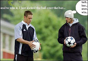 表現(xiàn)糟糕、尤其是罰丟點(diǎn)球的貝克漢姆和被英國人視作“搶走了他們勝利”的瑞士裁判邁耶爾成為了人們奚落的對象。