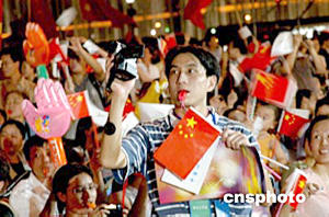 整個廣州城沸騰起來了,人們歡呼雀躍,祝賀廣州申亞成功。