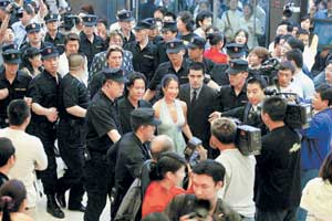 在新聞發(fā)布會(huì)結(jié)束后,尊龍、李玟、夏雨等主創(chuàng)與特地趕來(lái)助陣的華納藝人汪峰、老狼等還參加了走紅地毯儀式,由于活動(dòng)安排在了戶外,也使得現(xiàn)場(chǎng)一片混亂。由于紅地毯很窄,所有的攝影記者都圍在了兩邊。當(dāng)最后尊龍、李玟等人攜伴走來(lái)時(shí),記者們根本不顧任何阻擋一擁而上,圍觀的群眾也為看到兩位國(guó)際巨星,沖出了現(xiàn)場(chǎng)維持秩序的工作人員的阻擋,使得現(xiàn)場(chǎng)秩序大亂,而尊龍與李玟只得在眾多保鏢的圍攏下艱難地前進(jìn)。當(dāng)所有的明星在走完紅地毯后,現(xiàn)場(chǎng)一片狼藉,所有的花籃都散落在地上,有的小花盆還被人踩碎了,更有圍觀的群眾拿走掉落的鮮花。