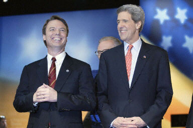 七月六日,美國(guó)民主黨副總統(tǒng)“選秀”塵埃落定?死锵嘀械,是在競(jìng)選中與他斗爭(zhēng)時(shí)間很長(zhǎng)、對(duì)他攻擊也特別厲害的對(duì)手——參議員愛(ài)德華茲。這兩位名字都叫約翰的參議員,將聯(lián)手在今年秋天與現(xiàn)任總統(tǒng)布什和副總統(tǒng)切尼爭(zhēng)奪白宮的寶座。