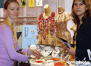 正在香港會展中心舉行的“香港時裝節(jié)春夏系列2005”展會上,各國參展商紛紛推出春夏系列時裝及配飾品。中新社記者:錢興強