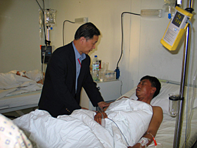 昆都士距喀布爾雖僅有三百多公里,但由于道路遭多年戰(zhàn)爭破壞,陸路要走八個(gè)小時(shí)。孫大使、徐武官和馬斗馳武官助理一行三人于上午10時(shí)登上聯(lián)合國僅有十幾個(gè)座位的小飛機(jī),11時(shí)10分抵達(dá)。這起重大恐怖襲擊事件震驚了世界,也牽動(dòng)了黨和國家領(lǐng)導(dǎo)人的心。孫大使臨赴工地前已得到胡錦濤主席、吳邦國委員長和溫家寶總理的指示,要求大使館全力搶救受傷同胞,妥善處理善后事宜。