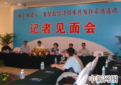 第二屆“網(wǎng)上河北行”網(wǎng)絡(luò)媒體采風(fēng)團(tuán)20日前往秦皇島經(jīng)濟(jì)技術(shù)開發(fā)區(qū)采訪。開發(fā)區(qū)管委會(huì)主任胡英杰、副主任李穎熹就開發(fā)區(qū)發(fā)展等問(wèn)題回答了記者的提問(wèn)。(秦欣攝)
