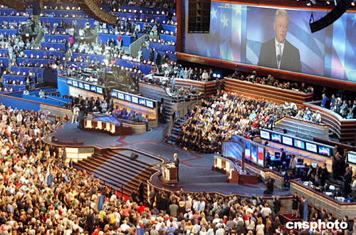 中新網(wǎng)7月26日電 據(jù)路透社報道,美國民主黨全國代表大會26日在波士頓開幕,以前總統(tǒng)克林頓為首的民主黨老將們以全明星陣容亮相開幕式,為該黨總統(tǒng)侯選人克里入主白宮站臺助選。除克林頓外,在開幕式上發(fā)表講話的還包括前總統(tǒng)卡特、前副總統(tǒng)戈爾及紐約州參議員希拉里。