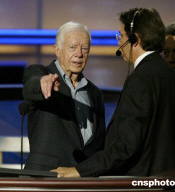 在美國前總統(tǒng)卡特、克林頓之前,民主黨前總統(tǒng)候選人戈?duì)柺紫鹊桥_,并作“現(xiàn)身說法”。戈?duì)栔赋,他呼吁部分選民不要向4年前他與布什對陣時(shí)那樣,將選票投給“保守”的布什。