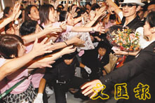 中新網(wǎng)7月27日電 據(jù)香港文匯報(bào)報(bào)道,劉德華昨早飛往日本為《十面埋伏》展開宣傳,雖然他乘坐的班機(jī)要到下午四時半才抵達(dá)日本機(jī)場,但其三百名歌影迷卻早在下午一時已到機(jī)場等候偶像。而機(jī)場方面的保安,見到如此多Fans也被嚇著,當(dāng)知道是華仔即將到達(dá)時,立即加派十五名保安,并架起圍欄限制歌迷等候的位置,以免造成混亂。