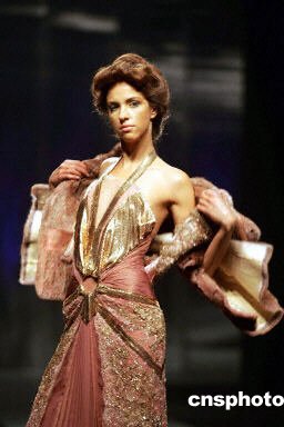 7月26日,黎巴嫩2004-2005秋冬時裝展在貝魯特舉行。圖為模特展示黎巴嫩時裝設(shè)計師Basil Soda的作品。