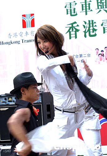 香港7月31日在時代廣場舉行“電車與你百載同行”百周年派對暨頒獎典禮活動﹐歌星鄭希怡在儀式上獻歌。作者:趙振清