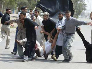 據(jù)統(tǒng)計(jì),美國(guó)空軍已經(jīng)多次攻擊費(fèi)盧杰的居民區(qū)了。美國(guó)軍方說(shuō)什么,“基地”組織在伊拉克的負(fù)責(zé)人阿布·穆薩卡·扎卡維及其追隨者就窩藏在居民區(qū)里。然而,事后的調(diào)查表明,每一次空襲的犧牲品都清一色是平民,其中包括許多婦女和兒童。(春風(fēng))
