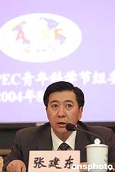 第三屆亞太經(jīng)合組織青年科學(xué)節(jié)(3rd APEC Youth Science Festival)新聞發(fā)布會(huì)八月二日在北京八十中學(xué)召開(kāi)。本屆青年科學(xué)節(jié)是首次在中國(guó)舉辦的將科技主題與青少年主題結(jié)合的大型APEC活動(dòng),由科技部、教育部、中國(guó)科協(xié)、共青團(tuán)中央和北京市政府共同主辦。APEC組織中的十四個(gè)成員經(jīng)濟(jì)體和澳門(mén)將派代表團(tuán)參加為期一周的活動(dòng)。北京市政府副秘書(shū)長(zhǎng)、組委會(huì)副秘書(shū)長(zhǎng)張建東介紹情況。作者:徐曦弋