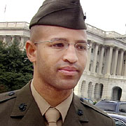 亨德森現(xiàn)年29歲,是駐美加州長灘第3海航炮火聯(lián)絡(luò)連的一名后備役軍人,他于去年參加了美國對伊拉克的戰(zhàn)爭。在影片中,他與導演摩爾在美國國會大廈外有這樣一段對話: