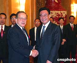 在談到香港問題時(shí),吳邦國說,香港回歸七年多來,中國政府切實(shí)貫徹“一國兩制”、“港人治港”、高度自治的方針,嚴(yán)格按照香港基本法辦事。香港大局穩(wěn)定,香港的國際貿(mào)易、金融和航運(yùn)中心地位進(jìn)一步鞏固。今年四月,中國全國人大常委會(huì)對香港基本法附件有關(guān)規(guī)定的解釋,以及對二00七年特區(qū)行政長官、二00八年立法會(huì)的兩個(gè)產(chǎn)生辦法有關(guān)問題的決定,是完全符合憲法和香港基本法的,目的是維護(hù)香港的長期繁榮穩(wěn)定。希望美方履行在香港問題上的承諾,這符合包括美國在內(nèi)的國際社會(huì)的共同利益。