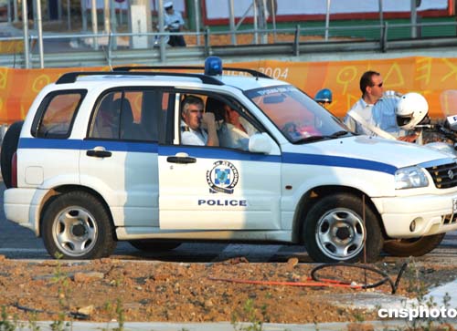 希臘雅典奧運(yùn)會(huì)即將開幕,(當(dāng)?shù)貢r(shí)間)二○○四年八月三日清晨,眾多希臘警察開始一天的街頭巡邏執(zhí)勤。中新社記者:任晨鳴