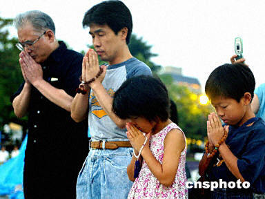 廣島市長秋葉忠利在有4萬人參加的紀(jì)念活動(dòng)上發(fā)表了上述講話。日本首相小泉純一郎和遭受原子彈轟炸的幸存者以及死難者的家屬參加了紀(jì)念活動(dòng)。