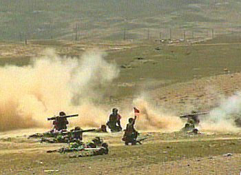 然而,“恐怖分子”試圖頑抗到底,繼續(xù)向聯(lián)合部隊(duì)開(kāi)槍射擊。喊話無(wú)效,聯(lián)合指揮所當(dāng)即決定實(shí)行火力打擊,實(shí)兵演練進(jìn)入第二階段。命令一出,霎時(shí),爆炸聲震耳欲聾,炮彈群雨點(diǎn)般落在“恐怖分子”藏匿的各個(gè)高地,硝煙四起,火焰沖天。煙火中,幾名“恐怖分子”四處突圍,被中方部隊(duì)各個(gè)擊斃。