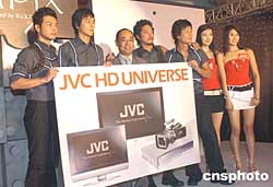 影星連凱、吳彥祖、陳子聰、尹子維8月6日在香港出席日本電氣品牌JVC舉行新一代等離子電視新聞發(fā)布會(huì),四人攜手為該產(chǎn)品代言,并于發(fā)布會(huì)上與JVC香港總代理合照。作者:鄧慶樂(lè)