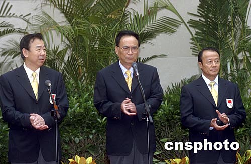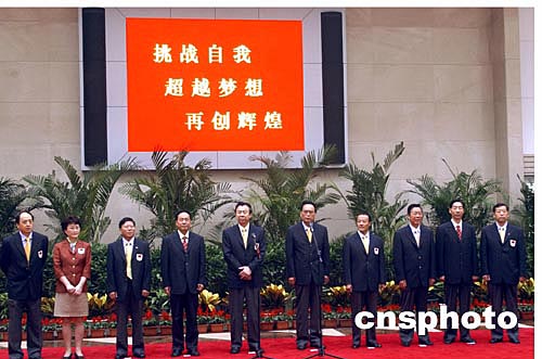 李志堅(jiān)、袁偉民、李富榮出席歡送奧運(yùn)軍團(tuán)儀式八月八日,由中國國家體育總局局長、中國奧委會主席袁偉民擔(dān)任團(tuán)長的中國體育代表團(tuán)一行二百六十七人,乘專機(jī)起程赴雅典參加八月十三日開幕的第二十八屆奧運(yùn)會。國家體育總局、中國奧委會為代表團(tuán)舉行了送行儀式。中新社記者:武仲林