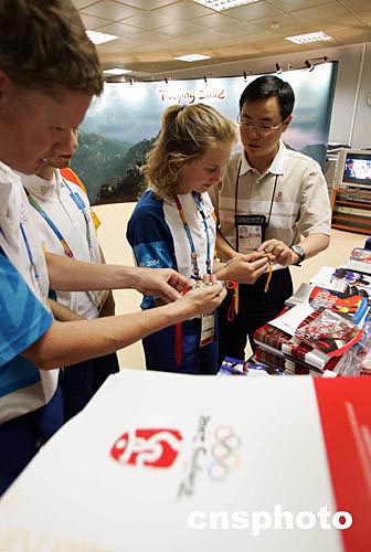 另一位叫威廉姆斯的女孩用很標(biāo)準(zhǔn)的漢語說:“北京很好,我喜歡北京!痹瓉,兩年前威廉姆斯曾到中國工作四個月,對中國留下了深刻的印象。她對北京奧組委提供的中國結(jié)和中國京劇臉譜愛不釋手。