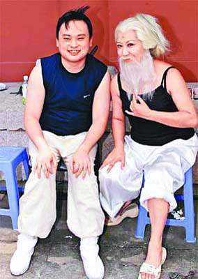 對于自己這個白衣長老的造型,薛家燕說:“本來不用粘這些胡子的,但我覺得粘上去會逼真很多,而且效果也很明顯,不過粘了上去以后你會覺得很辛苦,特別是這么熱的天氣!彪m然只是合作了幾天,但薛家燕對孔慶翔依然是贊不絕口,“他雖然是新人,但是我覺得他的演出已經(jīng)是很專業(yè)和投入,他很努力,每天的對白都背得很熟。其實在這部電影里,我們不需要他有特別的演出,只要做本能的演出就可以了,例如你們剛才看到的,召喚飛鳥來救我他只需在旁邊鼓掌就行了,而那些動作武打戲份就讓我和恬妞去分擔(dān),我希望大家可以給點時間讓他去磨練!毖已鄬λ难莩龃蛄艘粋80分,欠缺的20分她認為應(yīng)該是外界看了這部片以后給的。